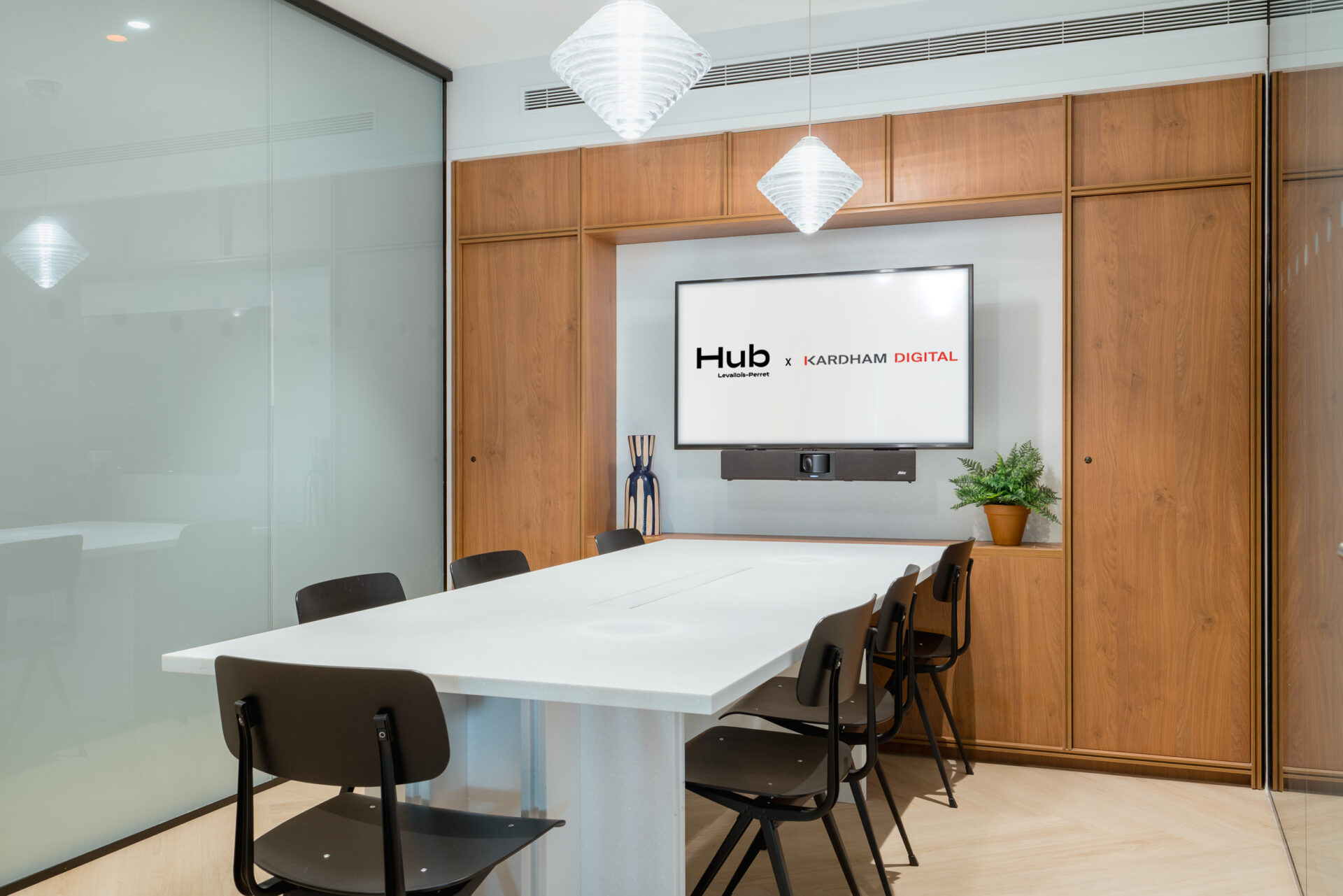 En parallèle, nos équipes ont réalisé l’aménagement audiovisuel des espaces communs, incluant le hall d’accueil, les salles de réunion et le restaurant d’entreprise.